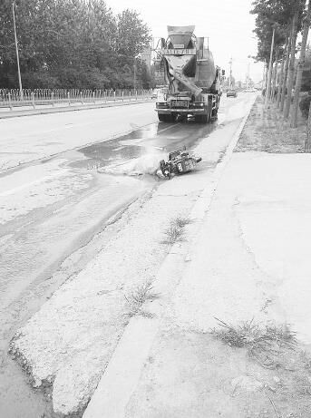 “這個女的騎著電動車,看起來30歲左右,開攪拌車的司機是個男的,兩人都是由南向北同向行駛?!备浇患疑痰昀习甯嬖V記者,當時兩人前面還有一輛灑水車在工作,電動車和攪拌車都避開了這輛灑水車繼續(xù)行駛。
