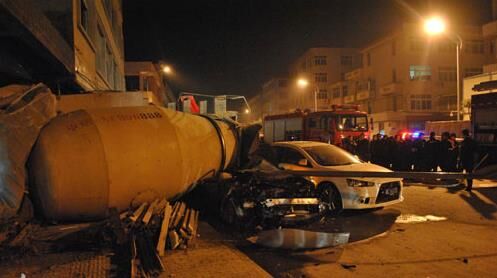 7月27日晚20時40分許,一輛紅色科魯茲小型轎車在槐蔭區(qū)濱河南路由西向東行駛,車上有兩名小伙子,當車開到臘山河西路路口時突然迎面撞上了一輛重型特殊結(jié)構(gòu)水泥攪拌車,這輛攪拌車正沿臘山河西路由北向南行駛,車的右側(cè)中部將小轎車彈飛。巨大的撞擊力造成小轎車司機當場死亡,乘車人受重傷。