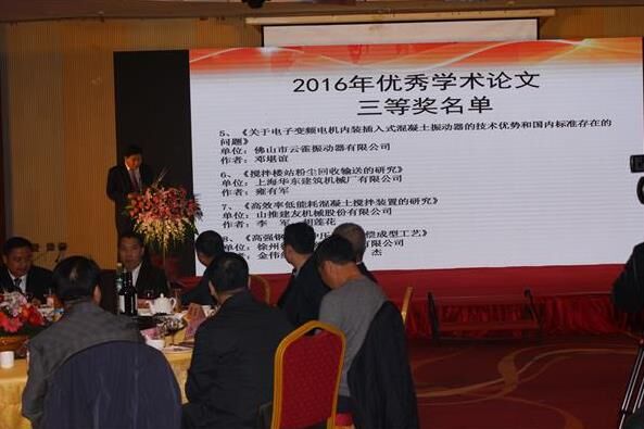 晚宴進行過程中,中國工程機械工業(yè)協(xié)會混凝土機械分會符忠軒會長上臺宣讀了《關于2016年學術(shù)論文評獎結(jié)果的通報》,并進行了優(yōu)秀論文頒獎活動。
