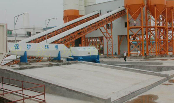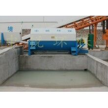 該系統(tǒng)主要由:攪拌車加水清洗裝置,溜槽輸送裝置,砂石漿水分離裝置,和泥漿水后處理裝置組成?;炷凛斔驮O(shè)備清洗后,將殘余混凝土排入溜槽中,在高壓水流沖擊下,經(jīng)溜槽進(jìn)入砂石分離機(jī),在不斷旋轉(zhuǎn)的分離機(jī)作用下,對混凝土進(jìn)行充分的清洗,同時將砂、石進(jìn)行分離,分離后的砂、石在導(dǎo)料葉片的作用下背向流動,再通過提升式出料口排出分離機(jī),分別堆放。清洗后的漿水從分離機(jī)的底部排出進(jìn)入沉淀池逐級沉淀后循環(huán)使用或進(jìn)入攪拌池回收利用。進(jìn)入攪拌池(一般情況2個攪拌池)的漿水為了防止沉淀凝固,需通過攪拌器的作用,攪拌器的工作為間歇式。分離出水泥漿在連續(xù)的攪拌器作用下,再通過高壓污水泵輸送到攪拌樓中待生產(chǎn)計量再利用。整個控制系統(tǒng)設(shè)有手動和自動控制,方便控制設(shè)置,整個系統(tǒng)運行可靠,故障率低,維護(hù)量少等特點。