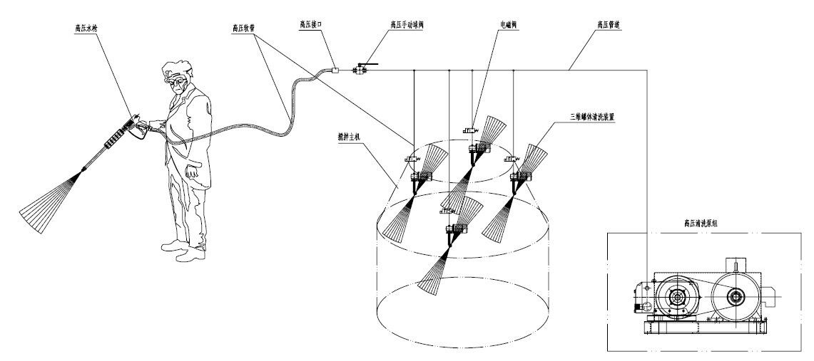 高壓清洗設(shè)備主機(jī)+三維旋轉(zhuǎn)清洗裝置,維護(hù)保養(yǎng)攪拌機(jī)內(nèi)壁的清洗利器!