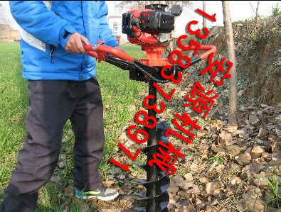 地鉆由小型通用汽油機(jī),齒輪箱及特殊設(shè)計的鉆具組成.適合在土地,凍土,冰層上打孔.廣泛用于園林,種植,植樹,物探,道路建設(shè)等領(lǐng)域  2.鉆頭采用錳鋼合成更加的堅硬。對硬土質(zhì),超硬土質(zhì),粘土,凍土等都能工作。   3.地鉆可根據(jù)樹種,選配多種規(guī)格的鉆頭,以滿足用戶需要。 4.地鉆能夠讓人們從繁重的體力勞動解放出來,廣泛應(yīng)用于植樹造林,栽種果林、籬笆、及秋季給果樹施肥等。適合各種地形,效率高,便于攜帶及野外田地作業(yè)。   5.地鉆既可以單人操作,又可雙人操作,經(jīng)濟(jì)實用。   注意事項:1.使用正品2T(二沖程)FC級機(jī)油,嚴(yán)禁使用4T(四沖程)機(jī)油。   2.嚴(yán)禁使用純汽油。   3.嚴(yán)格按251的比例兌油. 4.新機(jī)器不可高速使用,請低速磨合3小時。   5.嚴(yán)禁在高速的時候突然關(guān)停發(fā)動機(jī),否則會使下次開機(jī)啟動困難。   6.感覺機(jī)器震動異常,請立即停機(jī)檢查,是否破損,松動,偏心。   7.嚴(yán)禁在有亂石堆的草地上使用。   8.鉆頭有嚴(yán)格的尺寸限制,嚴(yán)禁私自改裝或使用增大號鉆頭. 9.每工作一段時間清除火花塞、消音器積碳,清洗空氣濾清器,向齒輪箱加注黃油。   10.遇到問題自己無法解決的,不要私自拆裝。   11.機(jī)器長時間不用時,應(yīng)該將剩余的燃油倒出,然后發(fā)動機(jī)器將化油器內(nèi)的燃油全部燃燒干凈。   12.想讓機(jī)器運轉(zhuǎn)更穩(wěn)定,壽命更長請經(jīng)常保養(yǎng)。   安全事項:   A.人身安全:嚴(yán)禁在室內(nèi)添加汽油,嚴(yán)防火災(zāi);機(jī)器運行時,嚴(yán)禁手腳靠近鉆頭;清理或檢查機(jī)器時必須停機(jī)。   B.機(jī)器安全:地鉆起動前必須清理草坪上的雜物,確保機(jī)器安全運轉(zhuǎn)。