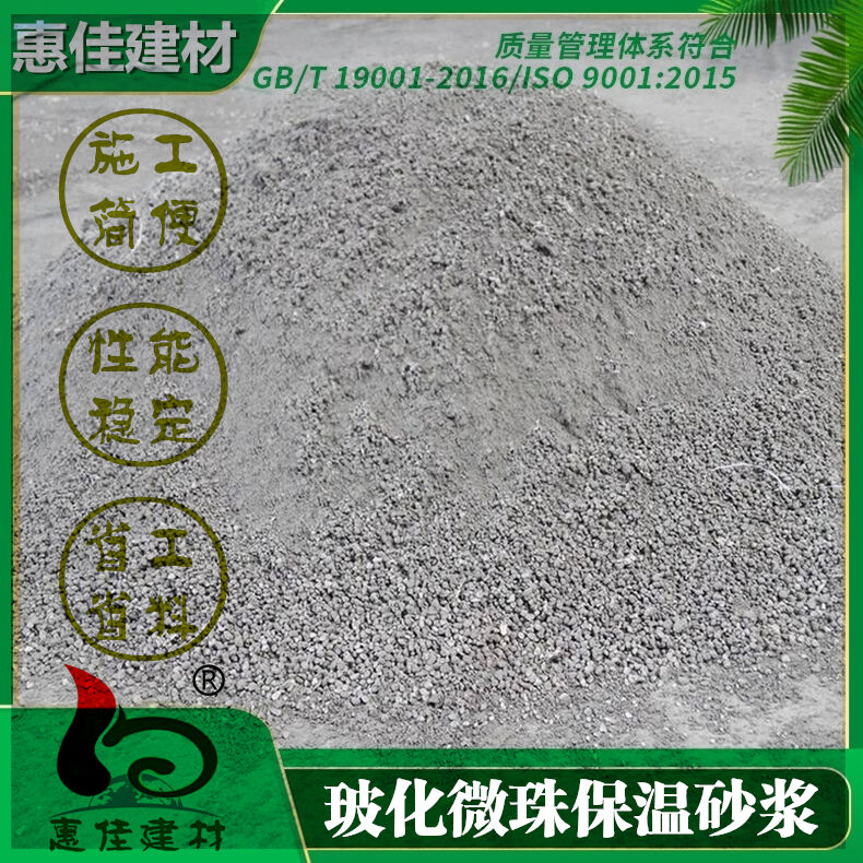 ?;⒅楸厣皾{是應(yīng)用于外墻內(nèi)外保溫的一種新型無(wú)機(jī)保溫砂漿材料, 以?;⒅闉檩p質(zhì)骨料、?;⒅楸啬z粉料按一定比例攪拌均勻混合而成,具有強(qiáng)度高、質(zhì)輕、保溫、隔熱好、電絕緣性能好、耐磨、耐腐蝕、防輻射等顯著特點(diǎn)。