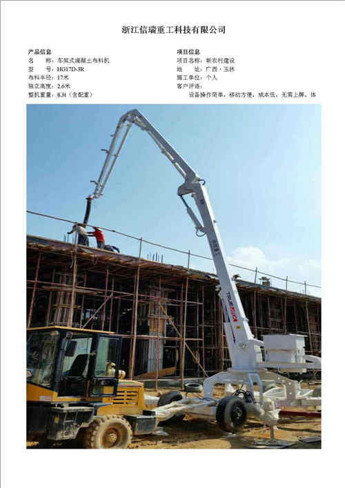 歸屬行業(yè):信瑞重工HG13A-3Z移動式液壓混凝土布料機