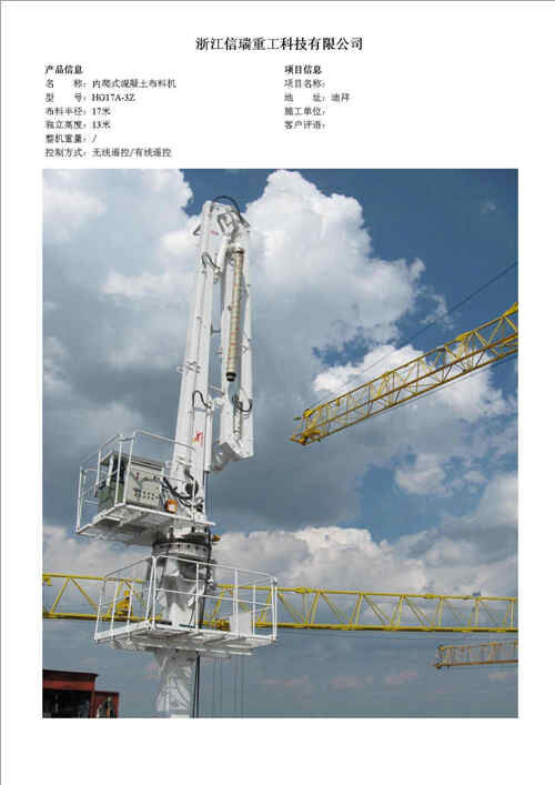 歸屬行業(yè):信瑞重工HG24A-3R樓面內(nèi)爬混凝土布料機