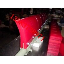 H型高分子聚氨酯清掃器 適用于清掃卸載滾筒處皮帶上粘附的物料,可分雙向刀頭和單向刀頭 屬于頭道清掃器??勺詣诱{(diào)節(jié)清掃器刮板與輸送機膠帶之間的接觸壓力,保證了刮板與運行的膠帶受力在一定合適的范圍之內(nèi),使清料既干凈,又不損壞膠帶。
