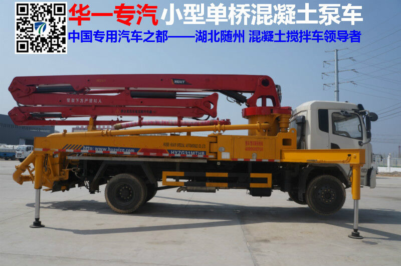 湖北華一專用汽車有限公司生產(chǎn)的小型泵車是國內首創(chuàng)小型混凝土臂架泵車,是目前國內體積小、一車兩用(高壓車載泵送、低壓泵送臂架布料)最具創(chuàng)意和經(jīng)濟效益的臂架泵車,以機械化作業(yè),代替勞動力(能替代40多個勞動力),填充農(nóng)、鄉(xiāng)、城、鎮(zhèn)建筑混凝土輸送的空白,適用于國家政策城鄉(xiāng)一體化建設不可缺少的專用車輛、具有靈活、方便、高效、經(jīng)濟、智能的優(yōu)點,小型混凝土臂架泵車在湖北具有代表性。