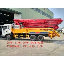 上裝配置:四節(jié)臂垂直高度三十一米,采用高強(qiáng)鋼材料,混凝土輸送缸1600mm,主油泵韓國川崎200或力士樂190,50料斗,臂架為紅色,底座為黃色。