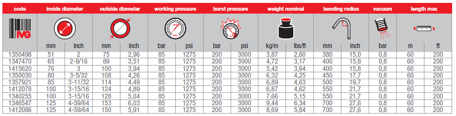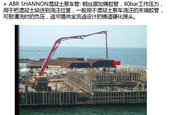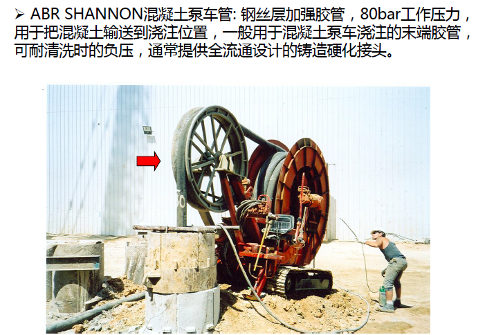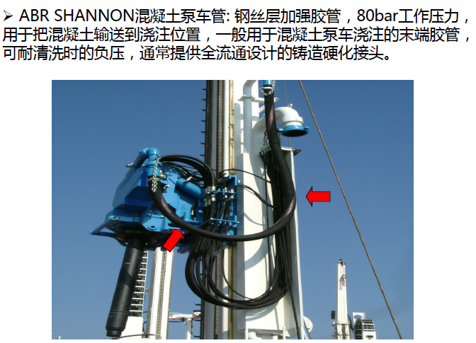 應(yīng)用范圍: 鋼絲層加強膠管,85bar 工作壓力,用于把混凝土輸送到 澆注位置;一般用于混凝土泵車澆筑的末端膠管,管子可以耐清 洗時的負壓,通常提供全流通設(shè)計的鍛造硬化接頭