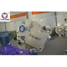 CQM系列高效強(qiáng)力混合機(jī)在強(qiáng)力混合機(jī)的料盤中,偏心安裝攪拌星與高速轉(zhuǎn)子。料盤以低速順時針方向旋轉(zhuǎn),連續(xù)不斷地將物料送入中速逆時針轉(zhuǎn)動的攪拌星的運轉(zhuǎn)軌跡內(nèi),借助料盤旋轉(zhuǎn)及刮料板的作用,將物料翻轉(zhuǎn)送入高速逆時針旋轉(zhuǎn)的高速轉(zhuǎn)子運行的軌跡內(nèi)進(jìn)行混料。在連續(xù)的、逆流相對運動的高強(qiáng)度混練過程中,物料能夠在很短的時間內(nèi)混合均勻一致,