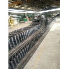 少土建投資、維護(hù)費(fèi)用低、輸送量大等特點(diǎn),解決了普通輸送帶或花紋輸送帶所不能達(dá)到的輸送角度。波狀擋