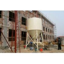 干粉砂漿儲料罐作為一個干粉砂漿的載體存放在施工工地,散裝干粉砂漿通過砂漿運輸車運輸?shù)焦さ兀?jīng)過氣力將干粉砂漿輸送到儲料罐中,使用時通過下端掛接的連續(xù)式攪拌機進(jìn)行攪拌即可。