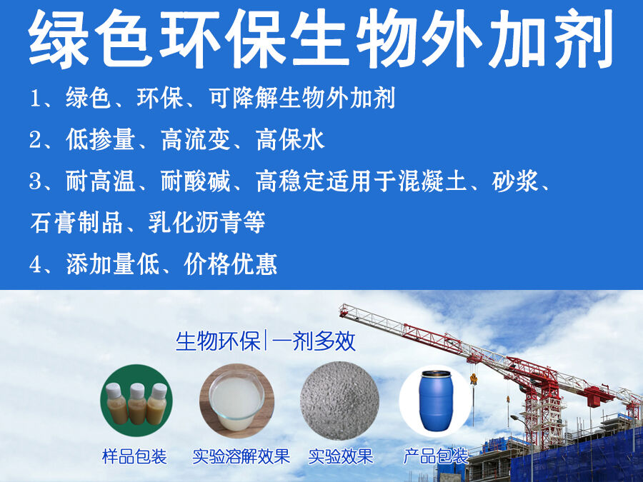 配伍性好:本產(chǎn)品屬高分子生物聚合物,耐酸堿性強,不與組分中的其他材料發(fā)生反應(yīng),與所有常用的摻料包括萘、三聚氰胺以及聚酸酸類外加劑都可兼容。