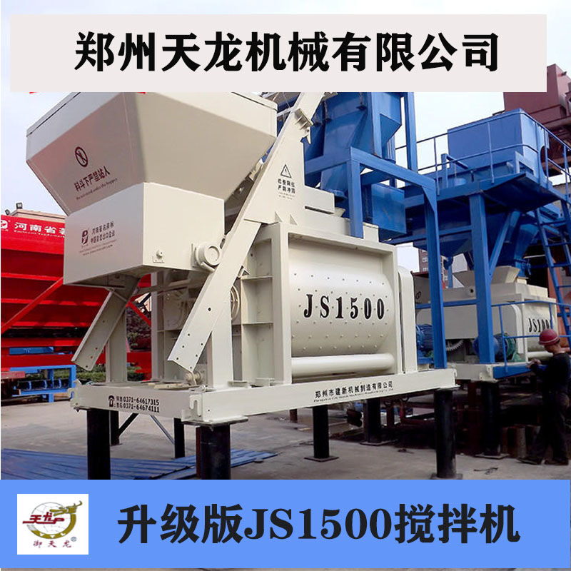 JS1500型混凝土攪拌機每次出料為1500公升,是鄭州天龍成熟的產(chǎn)品之一,在國內首屈一指,該型號攪拌機攪拌能力強,工作效率高,既可獨立作業(yè),也可用作HZS50HZS60攪拌站的主機,與配料機組成簡易的5060型混凝土攪拌站。