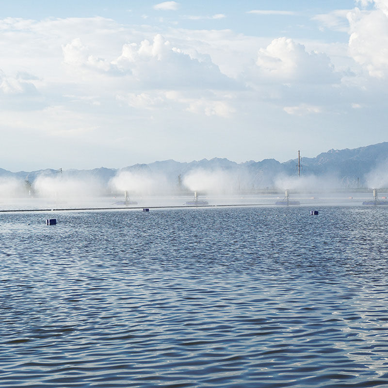 并且占地面積小、投資成本低。還有一種是風送式蒸發(fā)器、風送式蒸發(fā)器是把蒸發(fā)設備架在岸邊、利用高速旋轉的風機把水破碎噴灑在天空中進行蒸發(fā),這種和漂浮式蒸發(fā)器效果類似