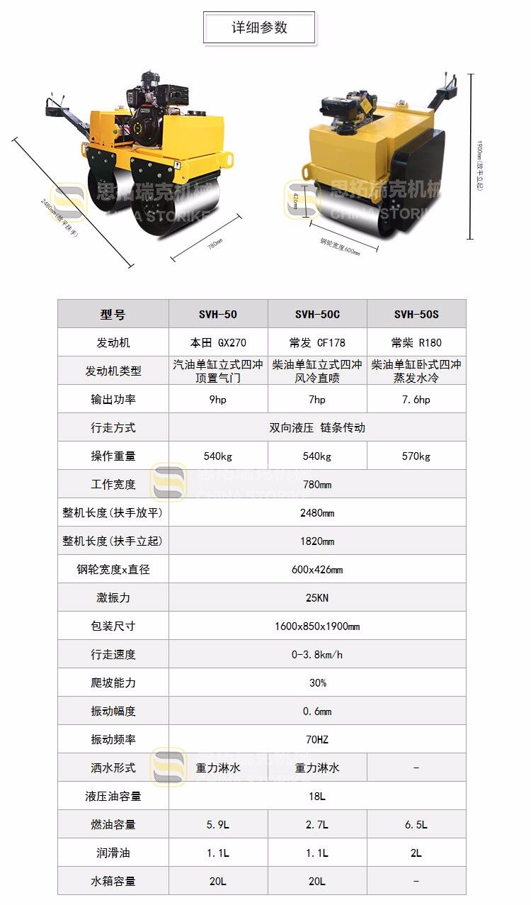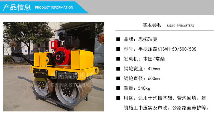 歸屬行業(yè):山東思拓瑞克SVH50 手扶式雙鋼輪小型壓路機