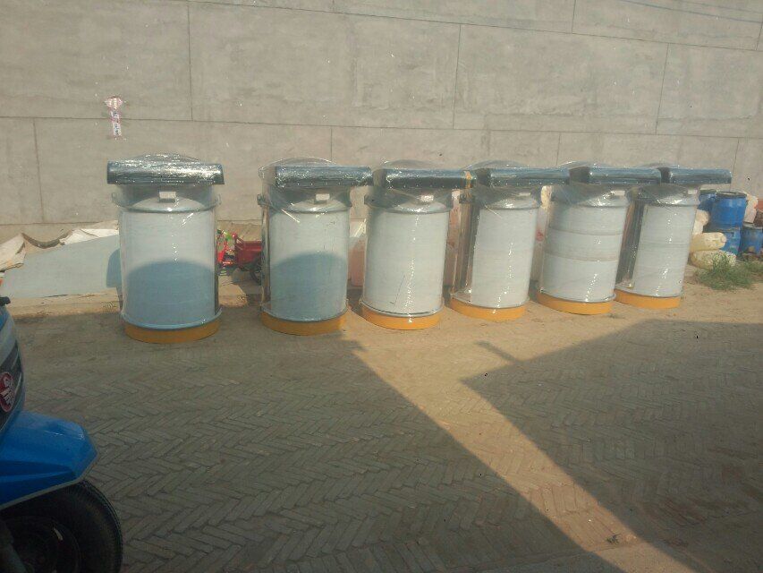 倉頂單機(jī)除塵器的結(jié)構(gòu):倉頂單機(jī)除塵器是一種圓形可拆的金屬濾筒,底板上有14個嵌入圓形孔,它設(shè)有14個濾芯,扎緊在上端1個振動器的吊架上,定時震動,使濾芯阻留下來的灰塵降落在倉內(nèi)。