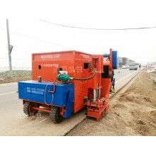 4.發(fā)動(dòng)路緣石機(jī),左前輪對(duì)準(zhǔn)墨線,均勻地將拌和料鏟入料斗,機(jī)械開(kāi)始滑模施工工作;