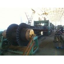 擋邊和隔板的底部和基帶是工廠按國際標(biāo)準(zhǔn)經(jīng)一次硫化加二次硫化結(jié)合而成。擋邊和隔板的高度可以達(dá)10-400mm,在裙帶中間,我廠增加了高強(qiáng)力抗拉伸織物層,加強(qiáng)了裙邊的抗撕裂強(qiáng)度,大大延長了裙邊的使用壽命