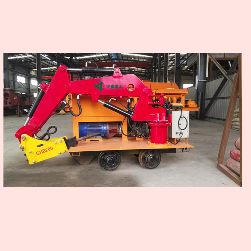 湖南宇泰重工生產(chǎn)的大石破碎機是集成行走滾輪、動力裝置、控制柜、機械臂和液壓破碎錘的機、電、液三合一的機械設備,主要應用于礦山井下大石的破碎。該機能處理邊長1000毫米以下物料,其抗壓強度最高可達160兆帕。具有破碎比大,破碎后物料呈立方體顆粒等優(yōu)點。