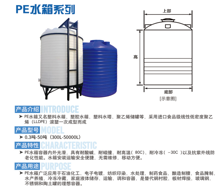 化工儲(chǔ)罐容器產(chǎn)品優(yōu)點(diǎn):一次成型內(nèi)外光滑,具有良好的衛(wèi)生性與抗紫外線能力,耐撞擊、抗強(qiáng)震、不易老化、不長(zhǎng)水藻、易清洗、防鼠、防白蟻、安裝移動(dòng)方便。廣泛用于高層筑二次供水、蓄水、水處理凈化設(shè)備配套、電子行業(yè)、工業(yè)用冷卻水、化工制劑、化工原料、各種油品、飲品的存儲(chǔ)、運(yùn)輸。這種塑料儲(chǔ)罐在生產(chǎn)中沒(méi)有使用任何添加劑、塑料填料,完全由本公司獨(dú)特配方改性增加聚乙烯(PE)材料加工制作而成,從儲(chǔ)罐罐體到進(jìn)出料口、人孔、法蘭等都為整體一次成型無(wú)焊接縫,所以儲(chǔ)罐還具有無(wú)焊接縫、不滲漏、無(wú)毒性、重量輕、抗老化、抗沖擊、耐腐蝕、壽命長(zhǎng)、符合衛(wèi)生標(biāo)準(zhǔn)等優(yōu)點(diǎn),其價(jià)格低于不銹鋼儲(chǔ)罐、普通玻璃鋼儲(chǔ)罐、聚丙烯儲(chǔ)罐、聚氯乙烯貯罐,自然條件下的使用壽命更長(zhǎng)。
