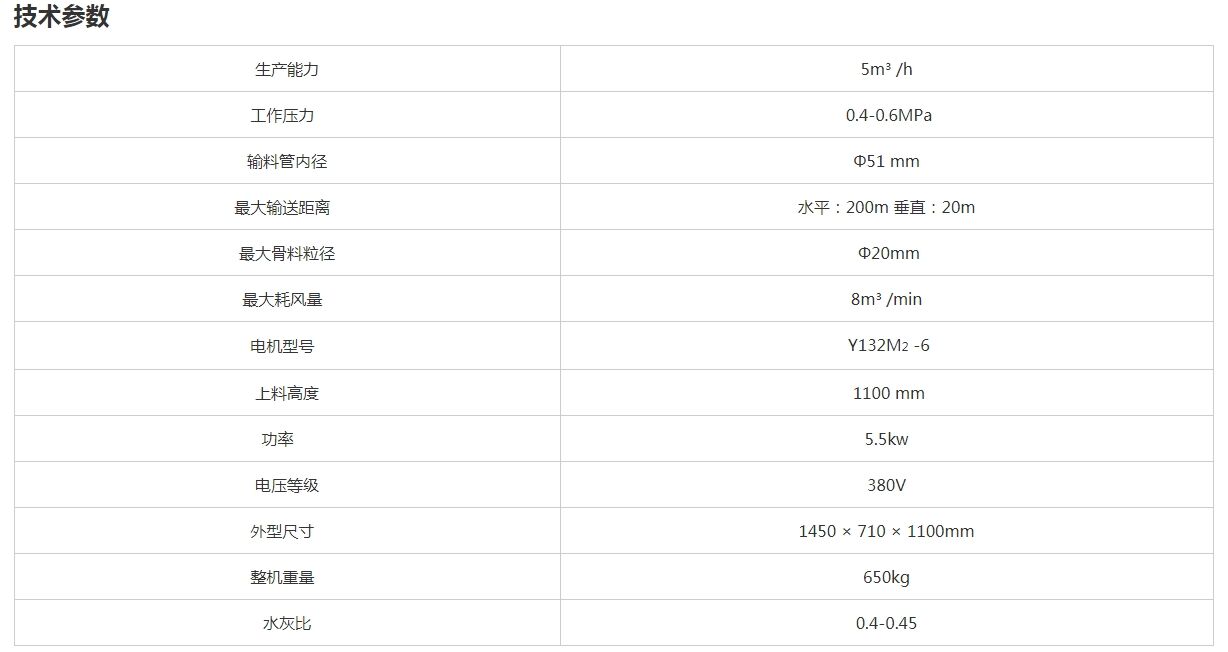 最大輸送距離:水平:200m垂直:20m最大骨料粒徑:20mm