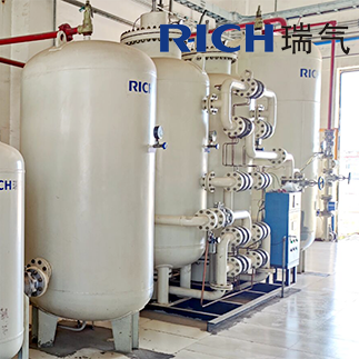 氮氣是一種中性惰性氣體,非活化狀態(tài)下,氮氣可作為保護氣體用于防爆或防止工作介質(zhì)被氧化等場所,被廣泛用于石油化工、天然氣開采及加工、金屬熱處理、干燥和防腐保護等領域中。40立方制氮機屬于小型制氮機,主要應用于化工、醫(yī)藥、食品等行業(yè),瑞氣所生產(chǎn)的40立方制氮機有10種純度指標,分別為97%、98%99%、99.5%、99.9%、99.5%99.9%、99.95%99.99%、99.995%99.999%、99.9995%,根據(jù)客戶所使用行業(yè)及用途不同,氮氣純度要求不同。制氮機在選用過程中并不是純度越高越好,用戶可根據(jù)技術評估或設計院設計參數(shù)購買合適的制氮機。