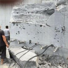 盤古斧液壓劈裂機工作原理為:利用風稿(液壓稿),鑿鉆的圓孔上,插入劈裂機的楔形塊組件,當啟動液壓泵站,液壓泵站工作產生高壓,驅動劈裂機楔形塊組的中間楔塊向前運動,將反向楔塊兩邊撐開,產生巨大分裂力(達600~900噸)!此分裂力由巖石內部向外,破壞巖石內部結構,(此力是拉應力,需知:供應貴陽巖石分裂機多少錢一臺巖石的拉應力遠遠小于抗壓應力,只有其抗壓應力的10%左右);巖石在此分裂力作用下,沿設定的位置根據人們的需要分裂開來。