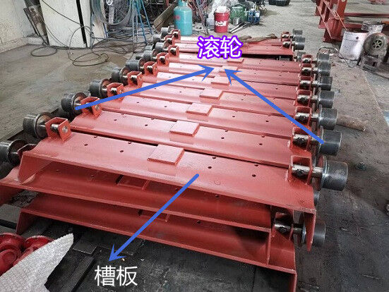 承載構(gòu)件——滾輪采用了滾動軸承結(jié)構(gòu),有利于減小運(yùn)行阻力,減少動力消耗。該結(jié)構(gòu)型式便于維護(hù)。滾輪由支承座和槽板固定,滾輪在軌道上滾動,帶動槽板和槽板上的物料運(yùn)動。