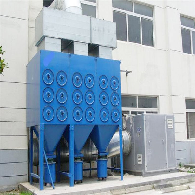 在正常運(yùn)行時(shí),如:重力、慣性力、碰撞、靜電吸附,篩濾作用等。含塵空氣由頂部入口進(jìn)入濾筒式除塵器,較大的粉塵顆粒因截面積增大,風(fēng)速下降而提高直接沉降,較小的煙塵粉塵顆粒通過濾筒。粉塵被捕集在過濾筒外邊,清潔空氣則經(jīng)由濾筒中心進(jìn)入清潔空氣室,再經(jīng)出口由引風(fēng)機(jī)排出。隨著過濾不斷進(jìn)行,濾筒表面的煙塵粉塵越積越多,阻力不斷升高,及至濾筒清灰時(shí),固態(tài)控制將操縱電磁閥以打開一個(gè)空氣隔膜閥,于是高壓空氣便直接沖入所選濾筒中心,把捕集在濾件表面上的粉塵吹掃一清,使濾筒再生。粉塵則隨主氣流所趨,并在重力的作用下向下落入塵斗中。周而復(fù)始,連續(xù)過濾,使設(shè)備連續(xù)進(jìn)行得到保障。