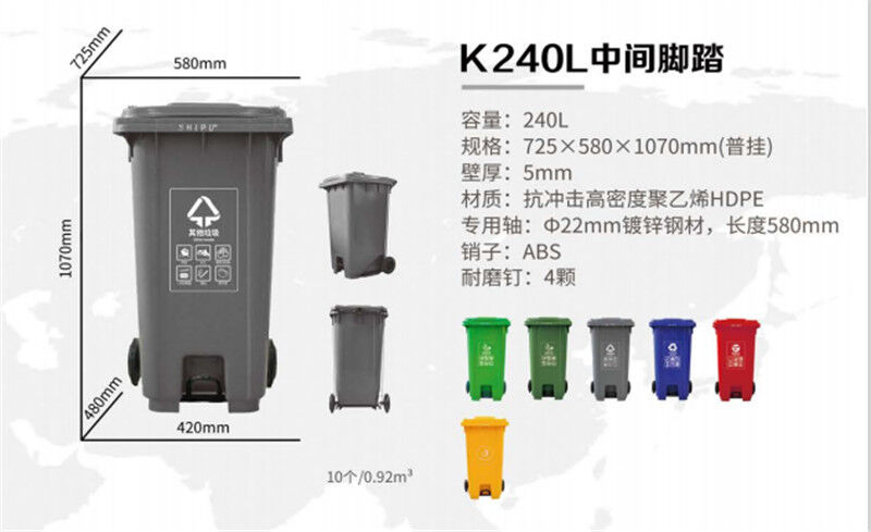 240L塑料垃圾桶/塑料環(huán)衛(wèi)垃圾桶,桶蓋密合,可防止異味散發(fā),雨水侵入,蚊蠅滋生,桶身可相互套疊,方便運(yùn)輸,節(jié)省儲(chǔ)運(yùn)空間與費(fèi)用,桶內(nèi)外表面光潔,便于倒空垃圾與清洗,垃圾桶設(shè)計(jì)符合 人體工程學(xué),輕便耐用,移動(dòng)靈活。產(chǎn)品賣點(diǎn)。240L塑料垃圾桶價(jià)格不浪費(fèi),讓城市更美觀少占地:生活垃圾中有些物質(zhì)不易降解,使土地受到嚴(yán)重侵蝕。垃圾分類,去掉能回收的,不易降解的物質(zhì),減少垃圾數(shù)量達(dá)50%以上。少環(huán)境污染:廢棄的電池含有金屬。約資源鎘等有害的物質(zhì)。