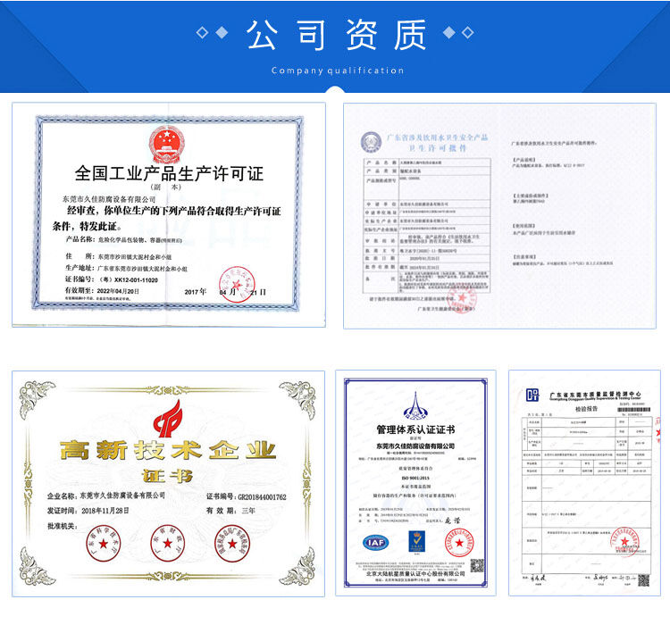 東莞市久佳防腐設(shè)備有限公司是國內(nèi)前沿的防腐環(huán)保設(shè)備制造商之一,竭誠以專業(yè)的防腐技術(shù)為各類石化、環(huán)保、釀造、醫(yī)藥、食品等行業(yè)提供防腐儲存運輸設(shè)備。公司擁有各類先進(jìn)的生產(chǎn)設(shè)備與檢測儀器。加工工藝成熟,檢測手段先進(jìn),經(jīng)過多年不斷創(chuàng)新努力,集生產(chǎn)、銷售各類鋼襯塑儲罐、鋼襯塑反應(yīng)釜、防腐儲罐、全塑儲罐、PE儲罐、離子交換柱等系列設(shè)備于一體。設(shè)備品質(zhì)得到廣大合作企業(yè)高度好評.設(shè)備技術(shù)合作開發(fā)愈加密切。