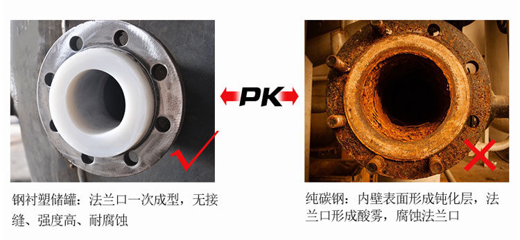 產(chǎn)品具有無(wú)焊接縫、不滲漏、無(wú)毒性、抗老化、抗沖擊、耐腐蝕、壽命長(zhǎng)、符合衛(wèi)生標(biāo)準(zhǔn)等優(yōu)點(diǎn)。它彌補(bǔ)了全塑滾塑儲(chǔ)罐剛性強(qiáng)度差,不耐壓,耐溫差的缺點(diǎn)。產(chǎn)品內(nèi)襯面平整、光滑、堅(jiān)固,與傳統(tǒng)的鋼襯塑料板儲(chǔ)槽、鋼襯橡膠儲(chǔ)罐、鋼襯玻璃鋼貯槽相比,具有更良好的耐腐蝕、不滲漏、不剝離、耐磨損、可耐一定壓力、可耐較高溫度、壽命更長(zhǎng)等優(yōu)點(diǎn),是儲(chǔ)存腐蝕液體的理想容器,也是一種極為優(yōu)異的耐腐蝕儲(chǔ)罐。