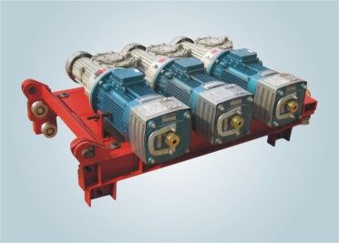 傳動機構(gòu)由電動機、電磁制動器、彈性聯(lián)軸器、蝸輪蝸桿減速器及傳動齒輪等組成。傳動機構(gòu)在吊籠上通過齒輪與