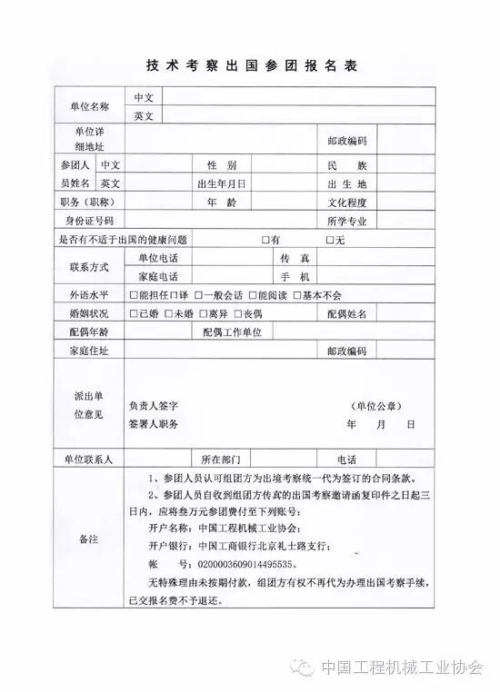 考察團(tuán)初步預(yù)計(jì)境外活動(dòng)時(shí)間14天,參團(tuán)費(fèi)3萬(wàn)元人民幣/人,其中含往返機(jī)票、境外食宿費(fèi)、境外交通費(fèi)、雜費(fèi)等,不包括在國(guó)內(nèi)發(fā)生的費(fèi)用。歡迎工程機(jī)械相關(guān)單位人員報(bào)名參加,報(bào)名費(fèi)2000元,用于辦理出國(guó)手續(xù)。