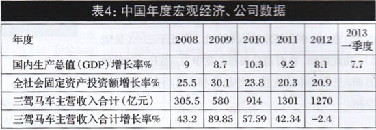 在連續(xù)多年保持高速增長之后,三駕馬車內部約宅因素增多、外部環(huán)境嚴峻等狀況,均在年報中得到反映.其多項財務指標出現回落趨勢。企業(yè)發(fā)展到于—個臨界點,調整發(fā)展戰(zhàn)略的時間窗口已經開啟。