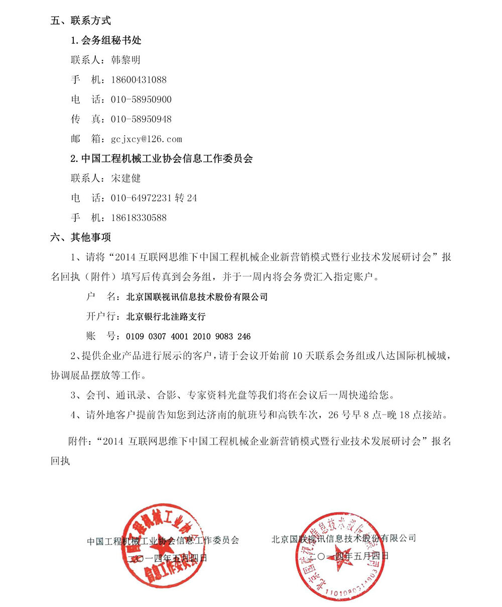 2014互聯(lián)網(wǎng)思維下中國(guó)工程機(jī)械企業(yè)新?tīng)I(yíng)銷(xiāo)模式暨行業(yè)技術(shù)發(fā)展研討會(huì)報(bào)名回執(zhí)