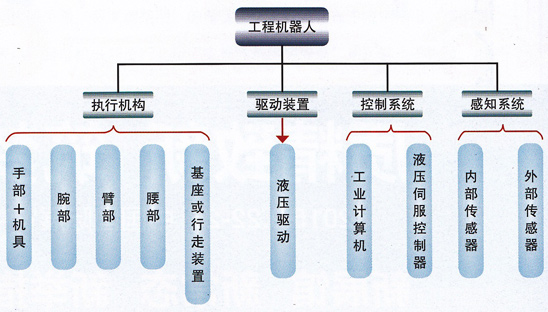 工程機(jī)器人的基本特征是液壓驅(qū)動、遙操作、移動作業(yè),具有大功率作業(yè)、寬范圍作業(yè)、多功能作業(yè)和智能作業(yè)的特點。